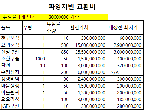 대상전에서 30억에 살 수 있는 선공방지이용권[7일]을 양이유실물 850개(255억 상당)으로 바꾸는 사람은 없습니다.
