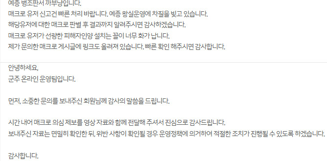 매크로가 작성한 근거없는 게시물에 남겨주신 댓글 중