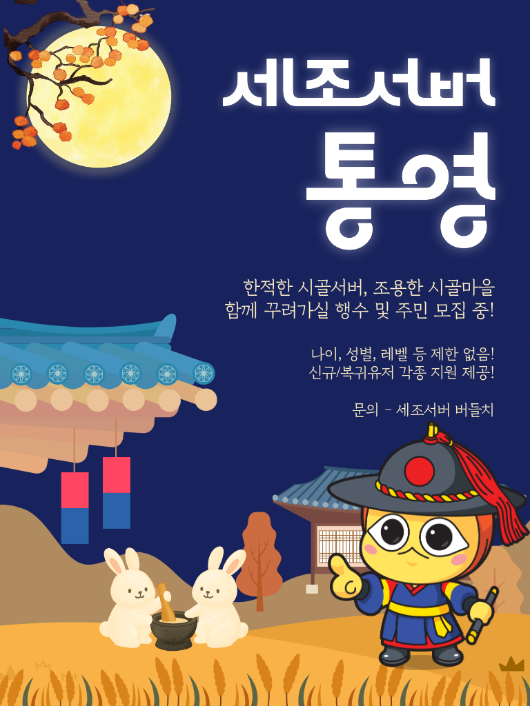 잠수중일 때가 많으므로 오픈톡 [세조서버 통영] 찾아오셔서 글 남겨주세요!
