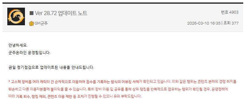 매크로 판별창 오류로 인한 감옥 수감 보상 요청