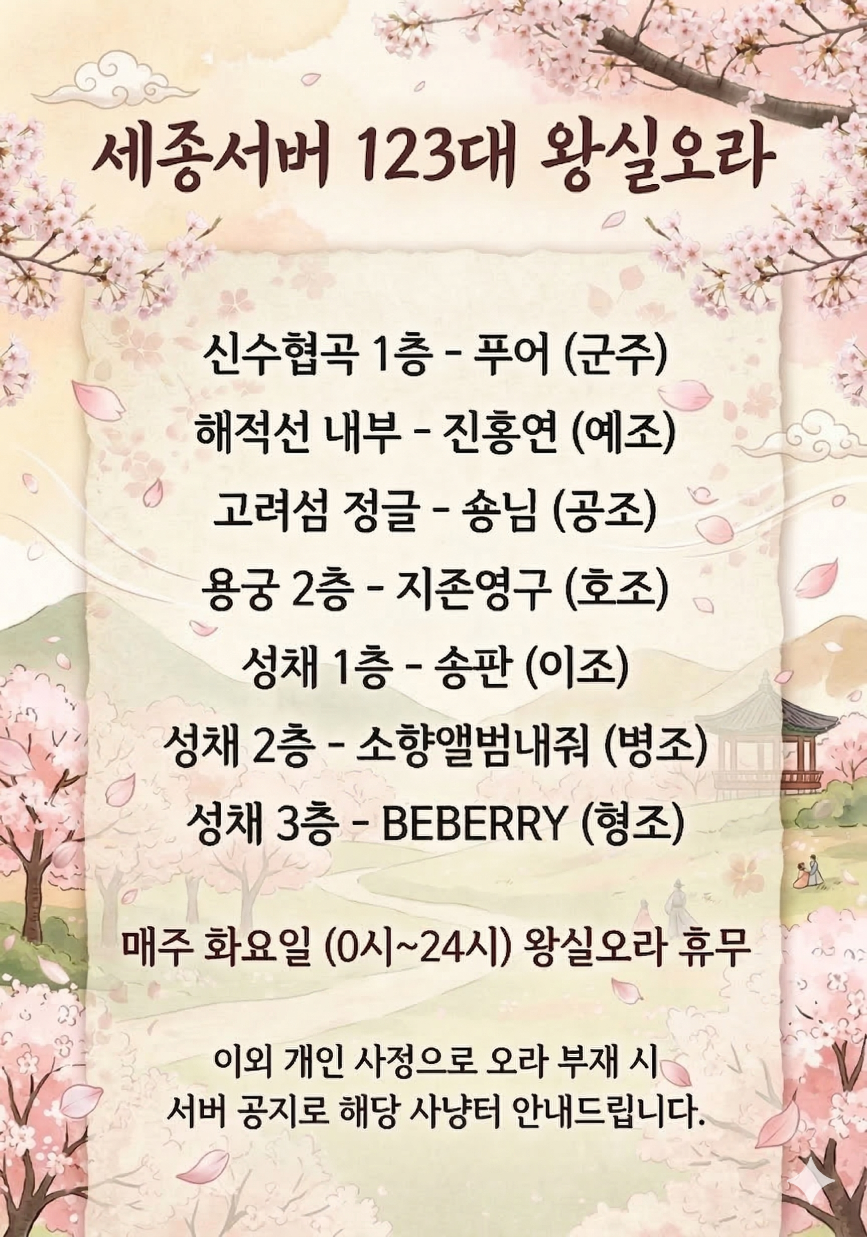 [세종서버] 123대 왕실 오라