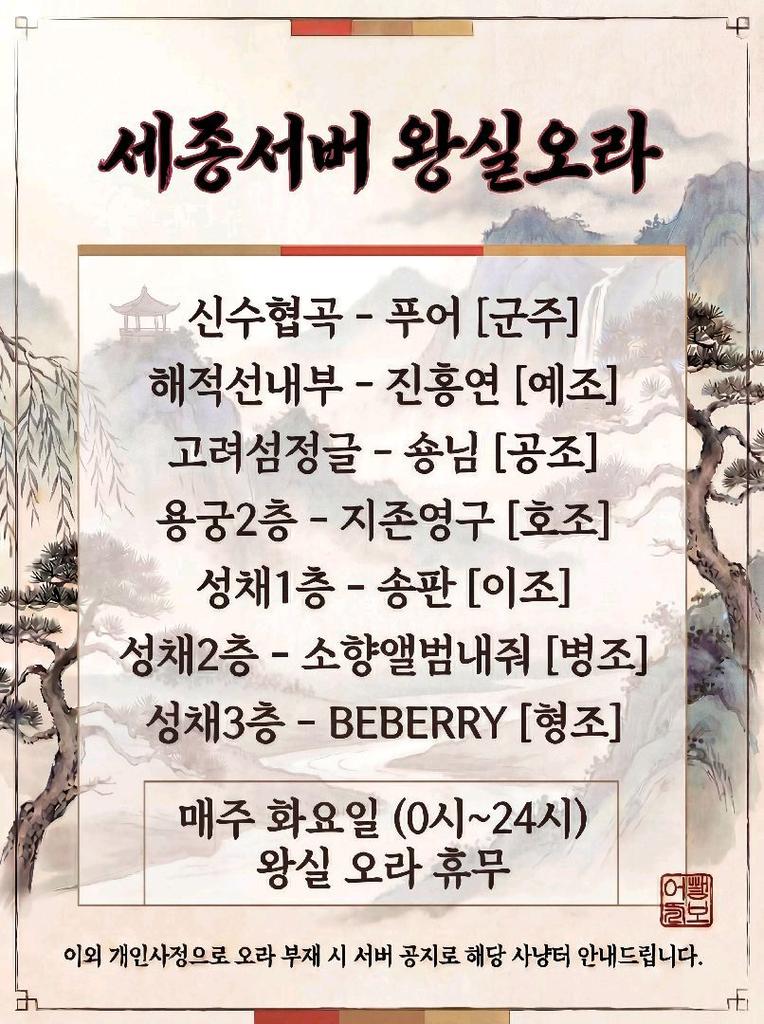 [세종서버] 123대 왕실 오라