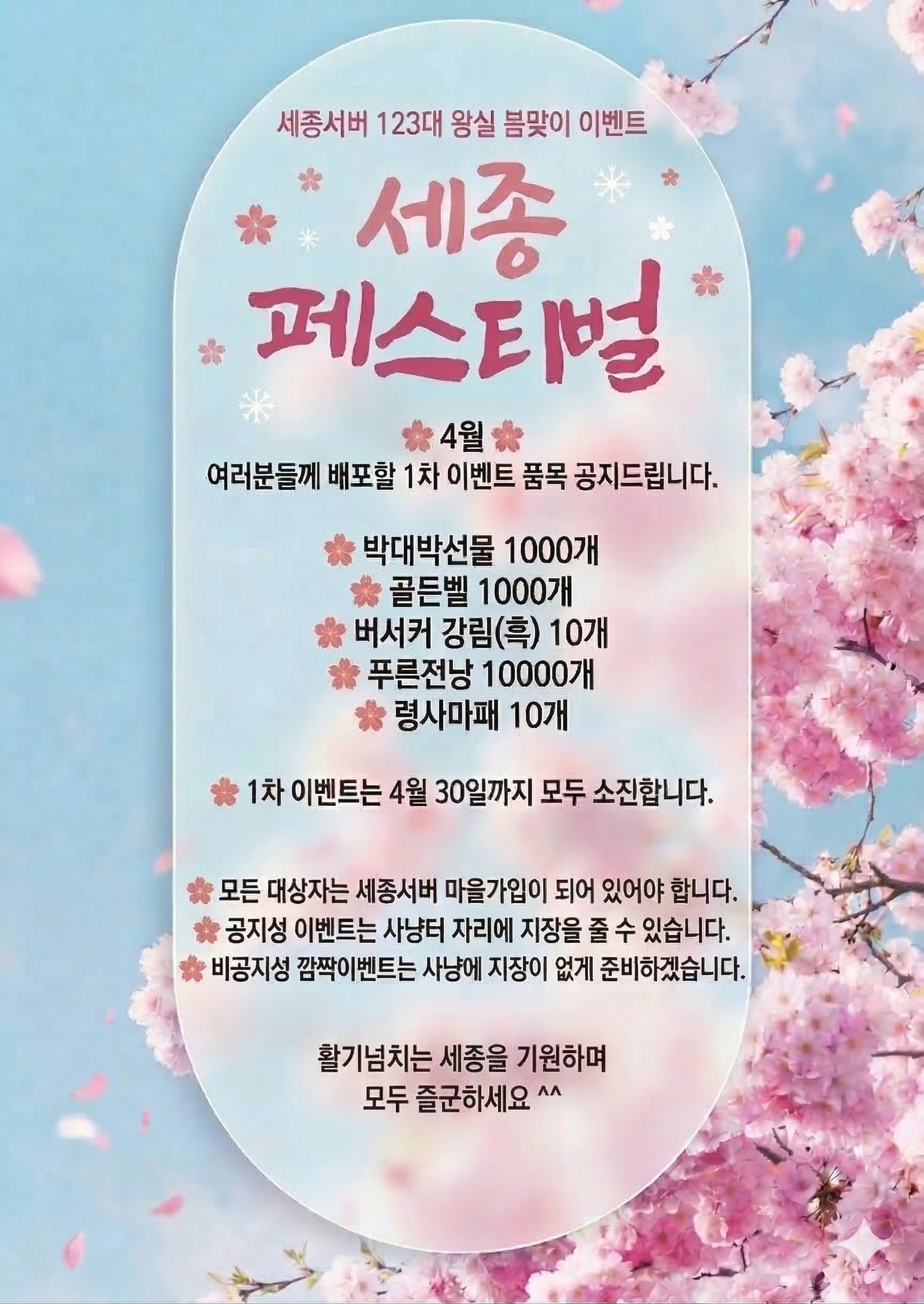 [세종서버] 세 종 서 버 1차 이 벤 트 계 획 오 픈