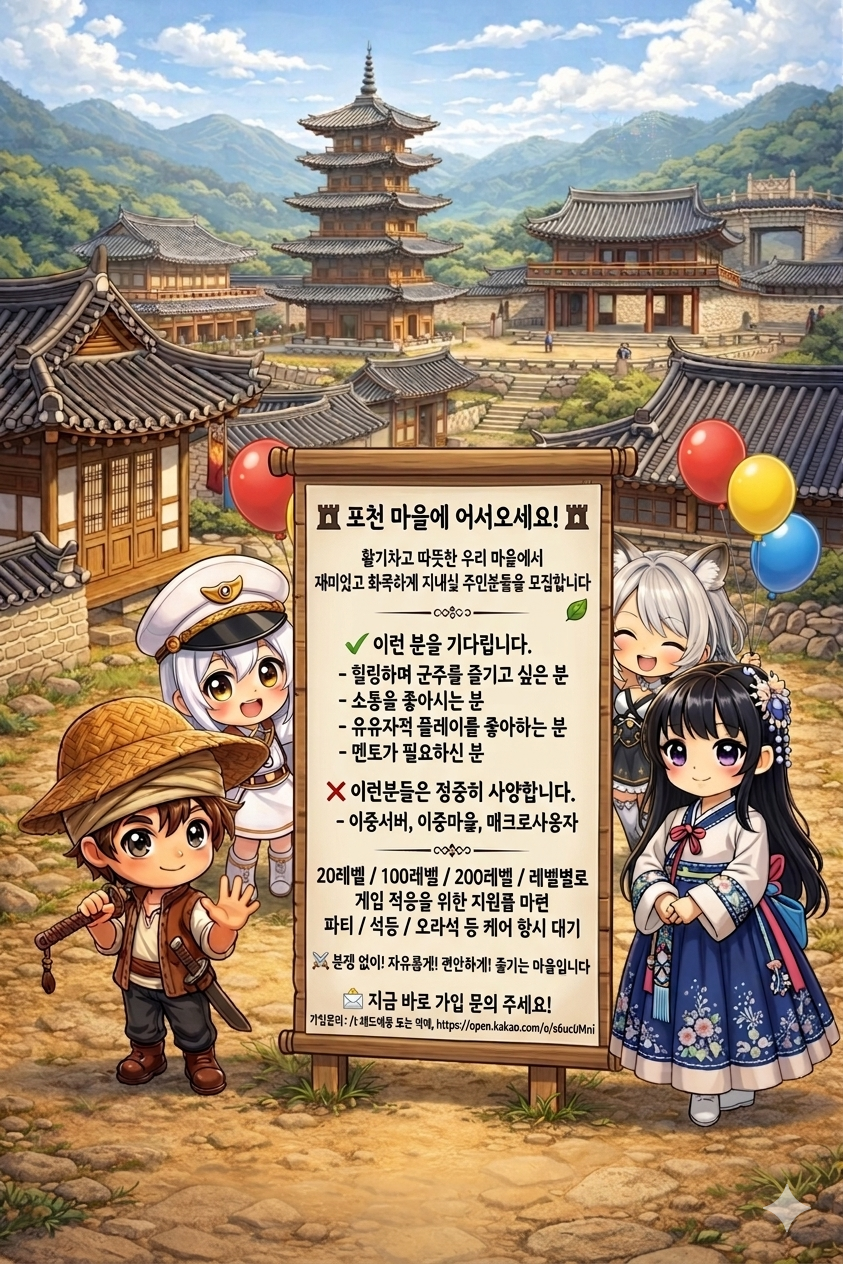 재미있고 화목하게 지내실 주민분들을 모집합니다.