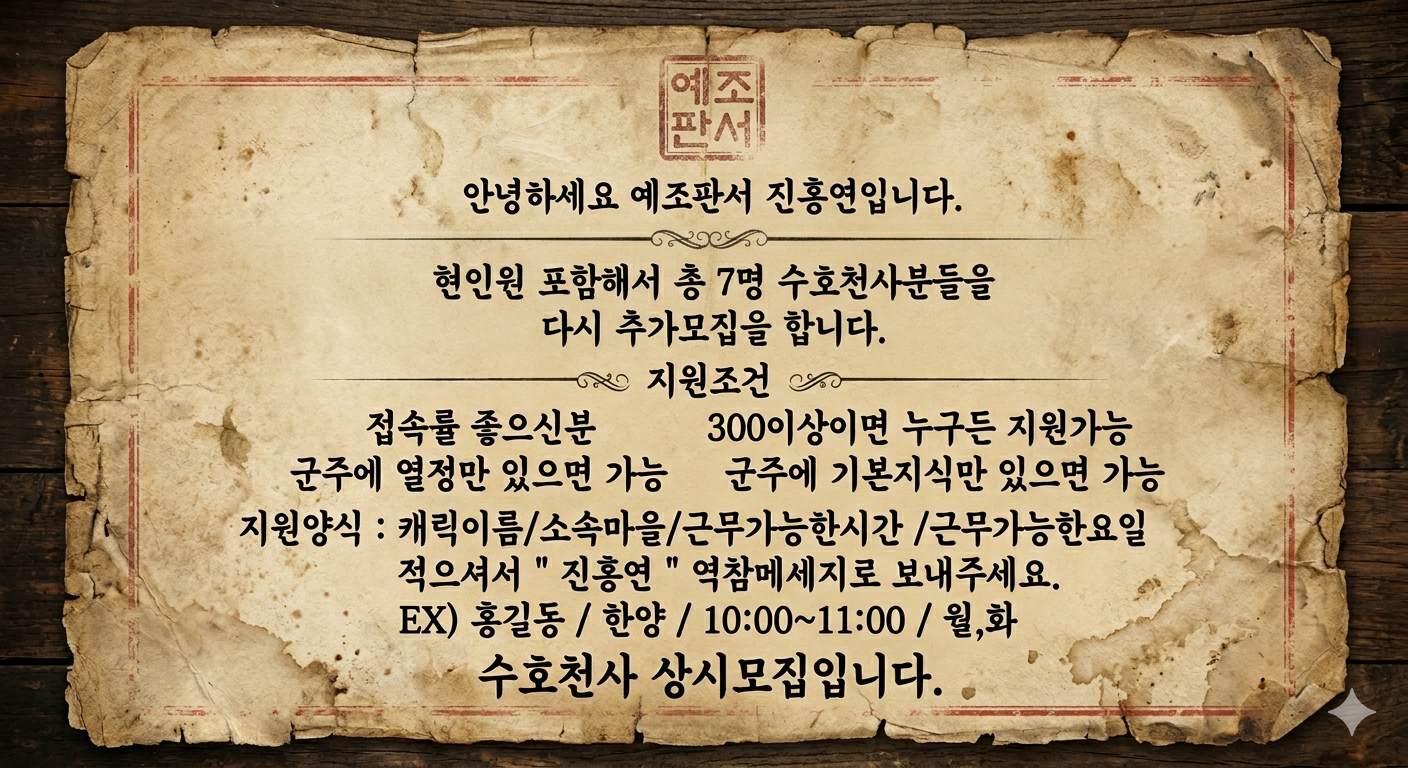♥세종서버♥ 123대 왕실 새로운 수호천사 모집합니다.