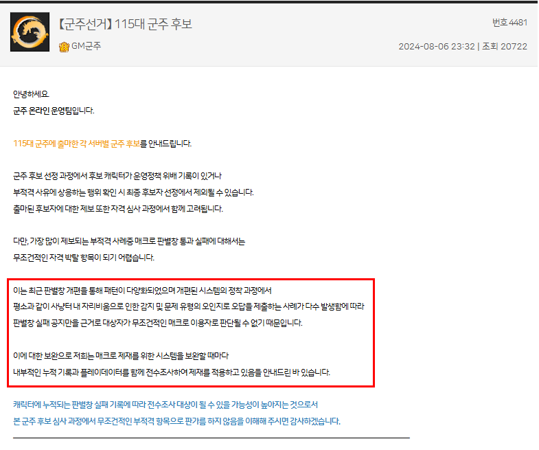 애초에 잦은 판별창 수감은 운영자가 정기적으로 알아서 확인하고 정지 먹이는데