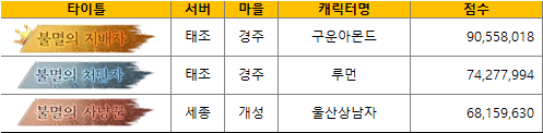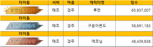 시즌제로 운용되는 필드보스 컨텐츠의 역대 최강자 명단이 본 공지에 기록됩니다.