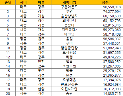 | 【필드보스】 역대 최강자 랭킹 |