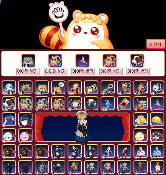 - 아이템 목록 중 5개가 랜덤으로 선택되어 최종적으로 하나를 선택하여 얻을 수 있는 아이템