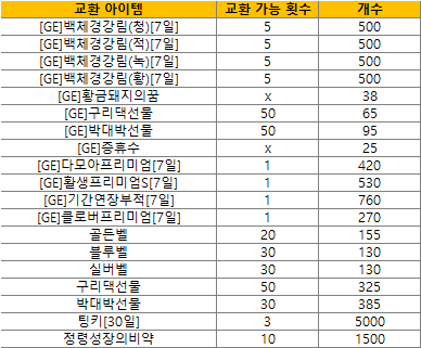 ▷ 이벤트 기간 동안 경복궁에 위치한 교환원나인NPC를 통해 아래 아이템을 교환하실 수 있습니다.