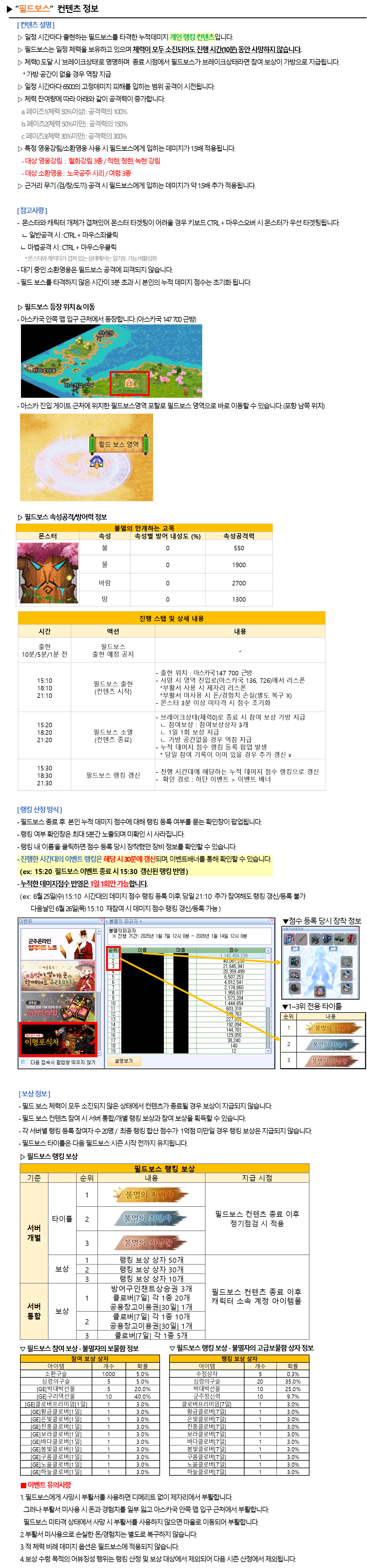 필드보스 시즌 9 진행 기간과 컨텐츠 정보를 안내드립니다.
